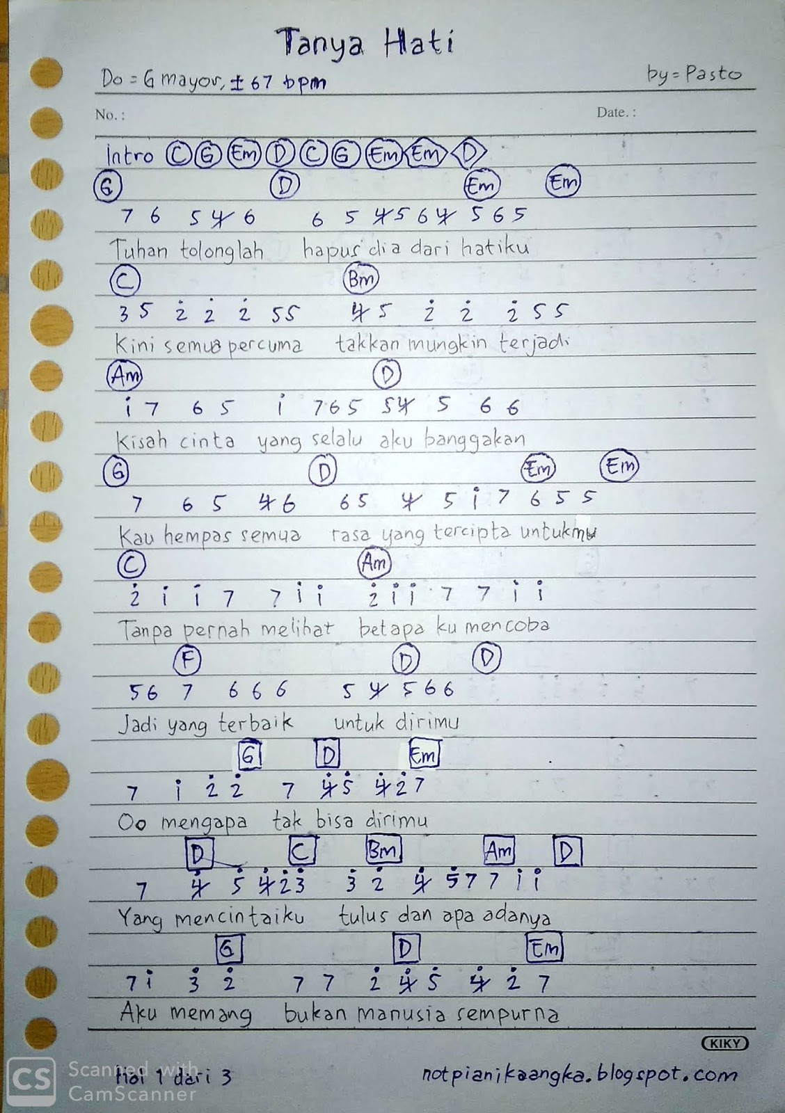 Kunci gitar tanya hati. Kumpulan chord gitar kunci gitar musik indonesia dan mancanegara kumpulan chord gitar pasto tanya hatikunci gitar pasto tanya hati pasto tanya hati. Kumpulan chord gitar kunci gitar musik indonesia dan mancanegara interlude c bm em d c bm em g tuhan tolonglah df em hapus dia dari hatiku c kini semua percuma bm tak kan mungkin terjadi am d kisah cinta yang selalu aku banggakan g kau hempas semua df em masa yamng tercipta. Pasto tanya hati chord interlude c bm em d c bm em g tuhan tolonglah df em hapus dia dari hatiku c kini semua percuma bm tak kan mungkin terjadi am d kisah cinta yang selalu aku banggakan g kau hempas semua df em masa yamng tercipta untukmu c tanpa pernah melihat am betapa ku mencoba.